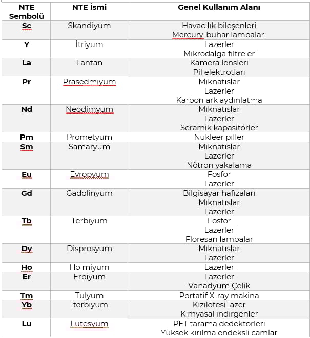 - MTA, DÜNYADA VE TÜRKİYE’DE NADİR TOPRAK ELEMENTLERİ (NTE), Fizibilite Etütleri Daire Başkanlığı, Eylül 2017.