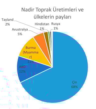 Görüleceği üzere Çin’in burada rezerv yönünden de zengin bir ülke olduğu ve maden üretiminin önemli bir kısmını gerçekleştirdiği görülmektedir. Çin’in hakimiyeti NTE’lerin rafinasyonu ve final ürün üretilmesi aşamasında daha da artmakta ve %90’ları bulabilmektedir.